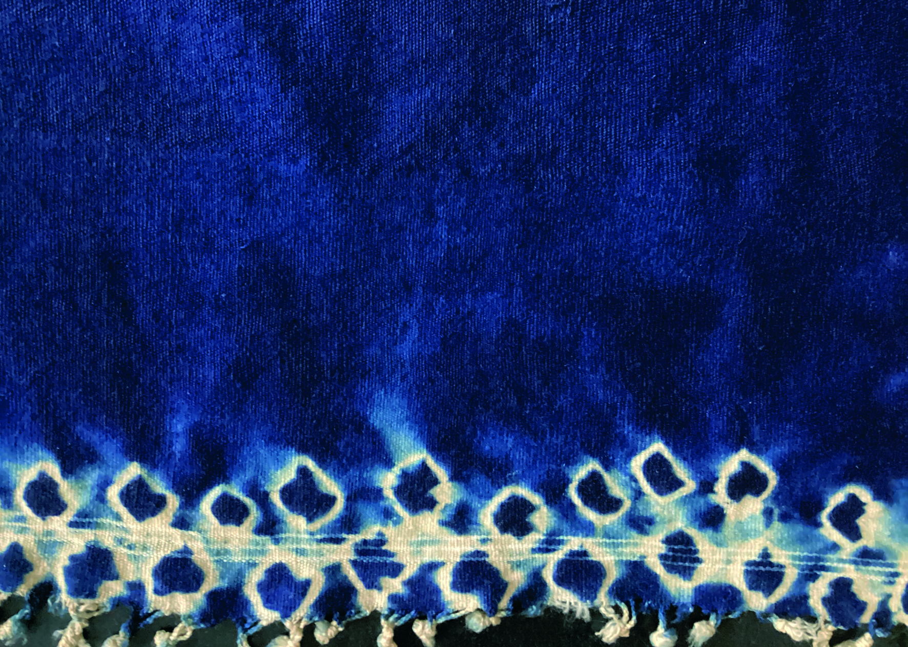 | Foto: | Detail Frauen Kopf- und Schultertuch, bakhnoug, westliches Lybien, Jebel Nafusa, Indigofärbung mit Reservetechnik, Wolle/Baumwolle, 1.Hälfte 20.Jhdt., 2,00 x 1,19 m. |